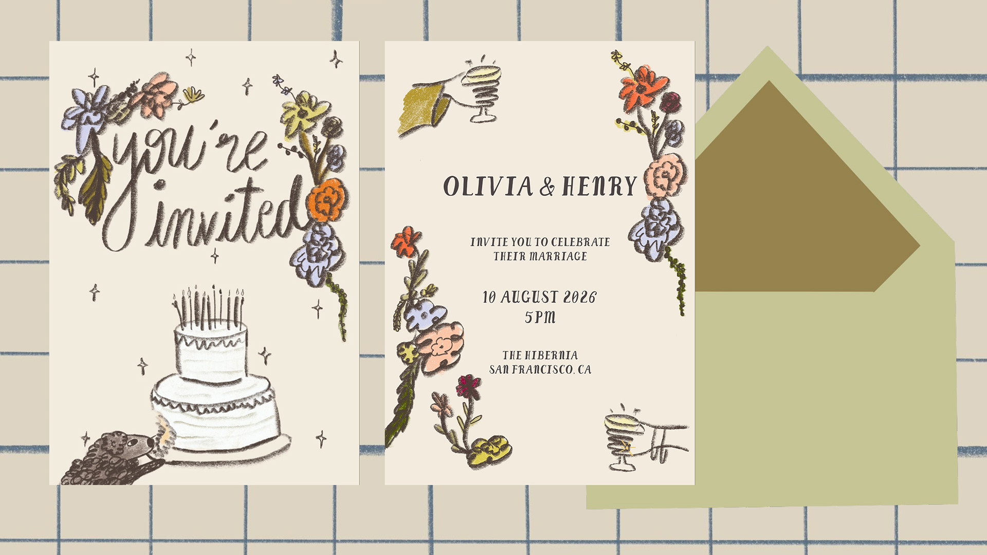 I create custom-illustrated save the dates, invitations, and additional assetsĀ that feel joyful and personal. While often designed for weddings, my illustration style is well suited for all kinds of events and celebrations, with each piece thoughtfully created from scratch to capture the spirit of the occasion.